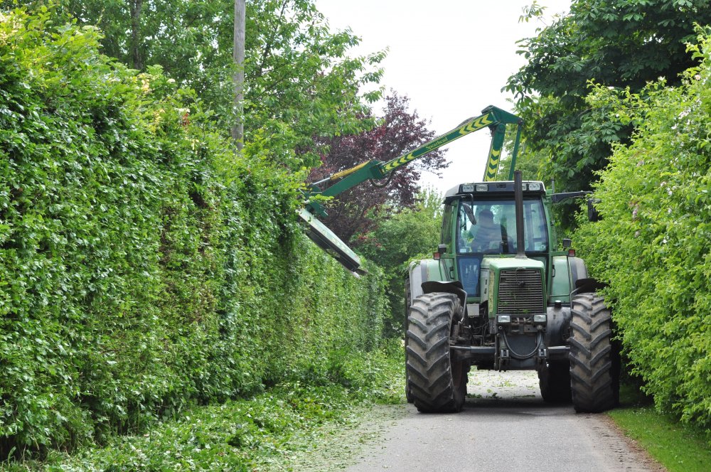 Forud for bedriftsbesøget d. 20. juni skulle hækkene klippes, rundt om Tandsgård. Det var også to år siden de var blevet klippet. Myrbjerg Maskinstation har det rigtige udstyr til den opgave og det kræver en tålmodig chauffør for at resultatet bliver godt.